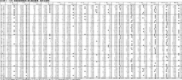 【2018年1~12月 地域別新車販売(含む軽自動車、海外生産車)】