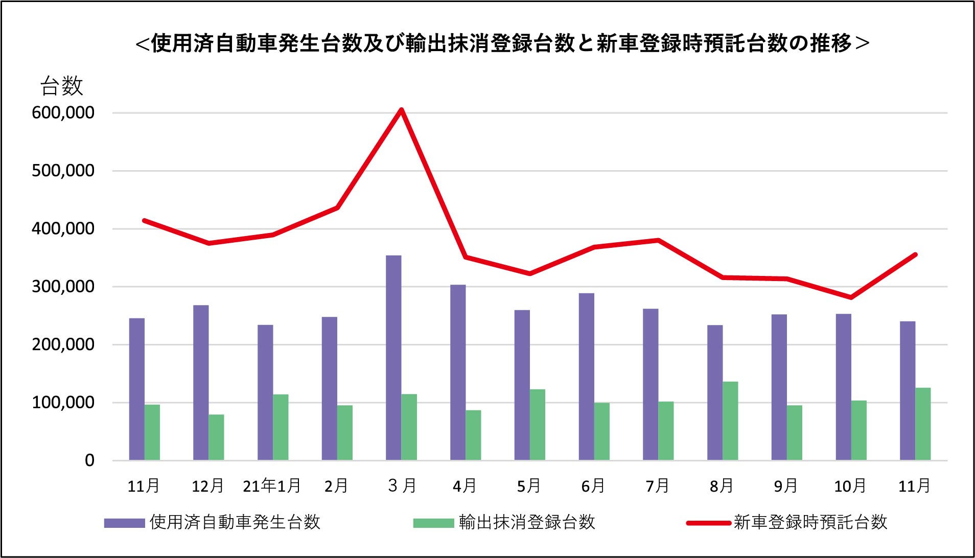 輸出抹消登録台数は12万5541台(同130.2%)。新車登録時預託台数は35万5669台(同85.9%)だった。