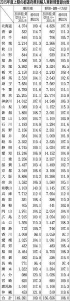 【2015年度上期の都道府県別輸入車新規登録台数】