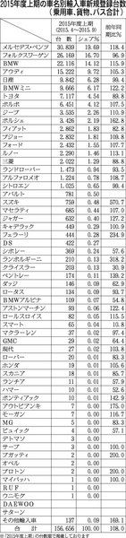 【2015年度上期の車名別輸入車新規登録台数(乗用車、貨物、バス合計)】