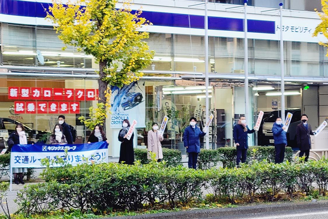 【名古屋】キリックスグループ(山口茂樹代表、トヨタモビリティ東名古屋・キリックスリース)は、全国交通安全運動期間に合わせた店舗前での立哨活動を行った=写真。社会貢献の一環として年4回の交通安全運動に合わせて行っている。交通量の多い道路に面...