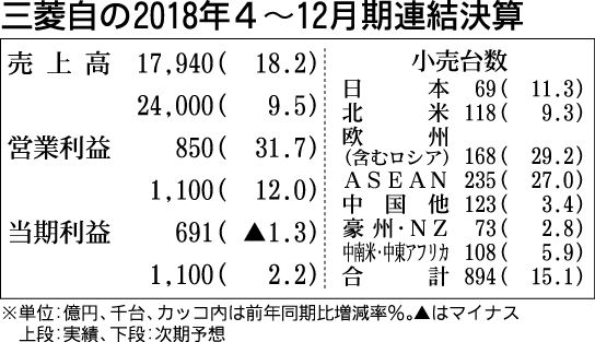 三菱自動車は1日、2018年4~12月期連結決算を発表し、ASEAN(東南アジア諸国連合)地域を中心として世界販売が伸長したことで売上高が第3四半期として2年連続の増加となった。営業利益は為替によるマイナス影響があったものの、資材費低減に...