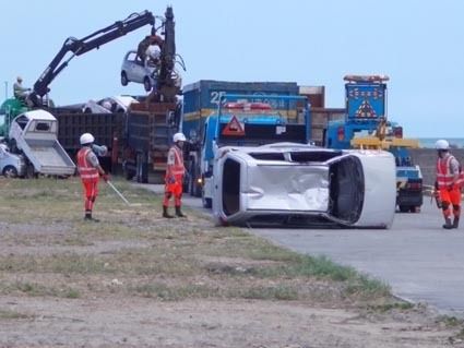 【那覇】日本自動車連盟(JAF)沖縄支部(堀川恭進支部長)はこのほど、中城村熱田で行われた「平成27年沖縄県総合防災訓練」に参加した。 地震災害などの発生を想定し、避難訓練や救助訓練、ライフライン復旧など、警察や自治体、多くの関係機関が参...