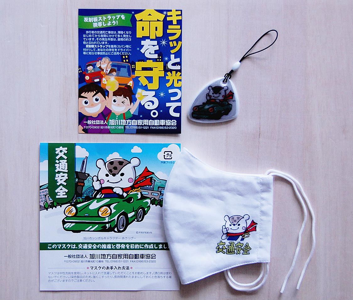北海道もようやく春の日差しを感じられるようになり、雪解け時の交通事故多発が懸念される。 旭川地方自家用自動車協会(吉田裕会長)は、旭川市のキャラクター入り交通安全グッズを製作し=写真、事故防止を呼びかけている。 グッズはコロナ禍の必須アイ...