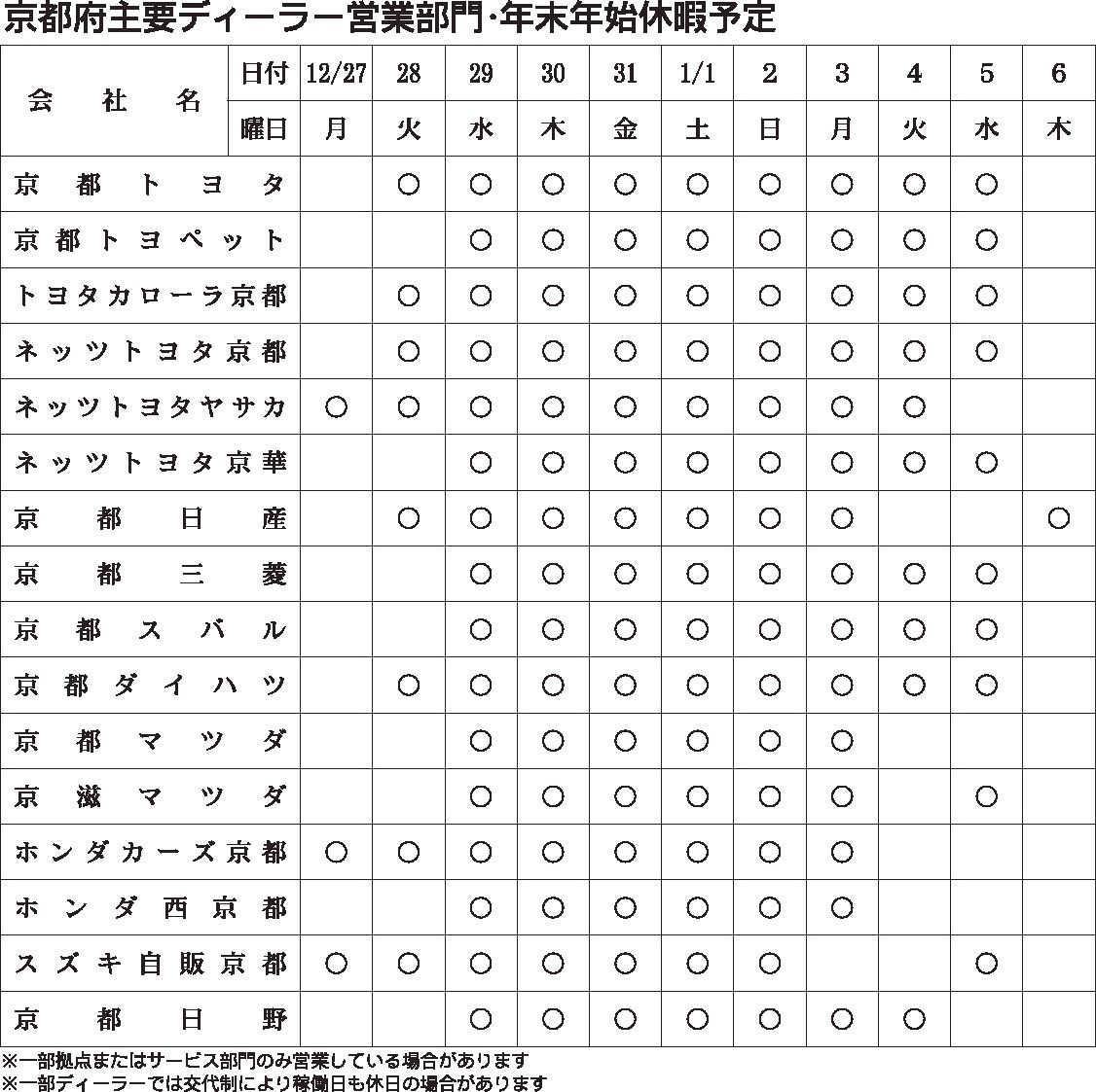 〈京都府主要ディーラー営業部門・年末年始休暇予定〉2021/12/27~2022/1/6