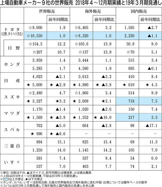 上場自動車メーカー9社の世界販売で減速感が強まっている。2018年4~12月期はスズキなど5社が前年同期実績を上回ったが、同10~12月期でプラスを確保したのはホンダ、日野自動車、いすゞ自動車の3社にとどまった。ホンダを除く乗用車メーカー...