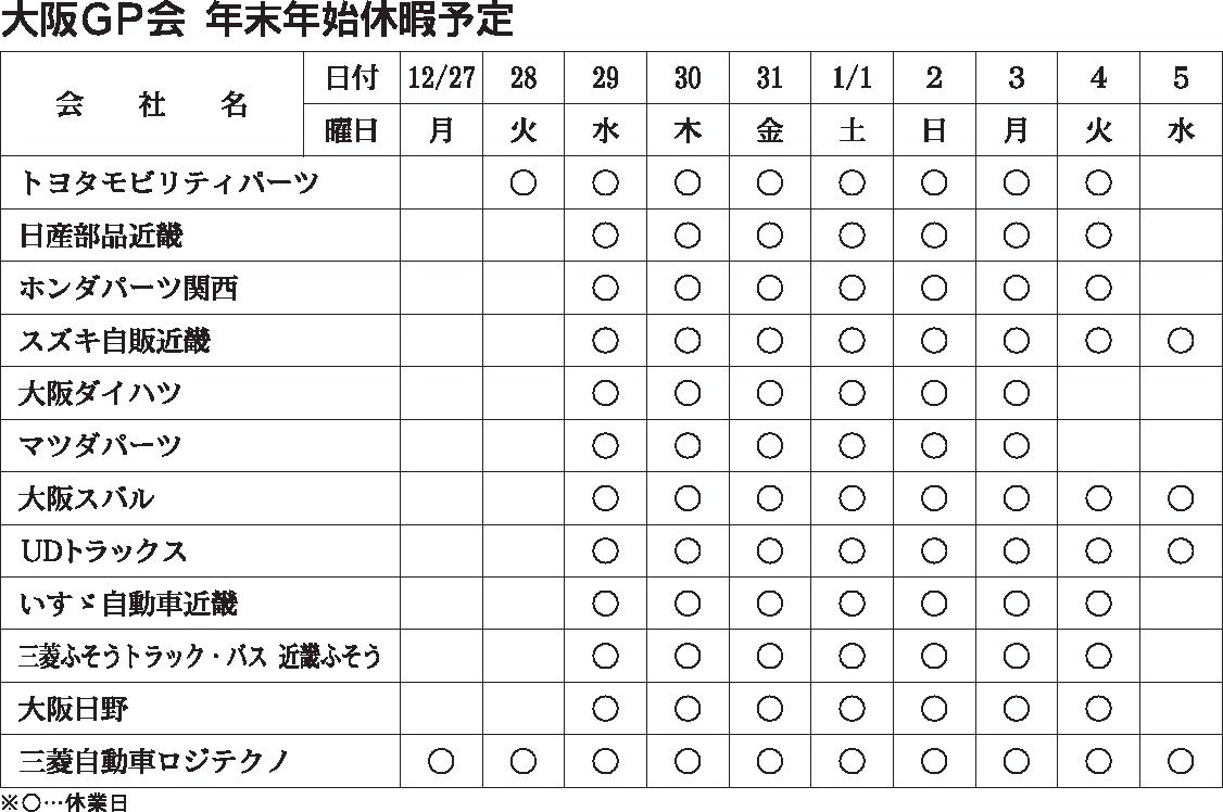 〈大阪GP会年末年始休暇予定〉2021/12/27~2022/1/5