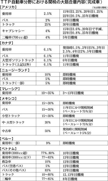 TPP大筋合意結果公表 自動車部品87%の関税即時撤廃