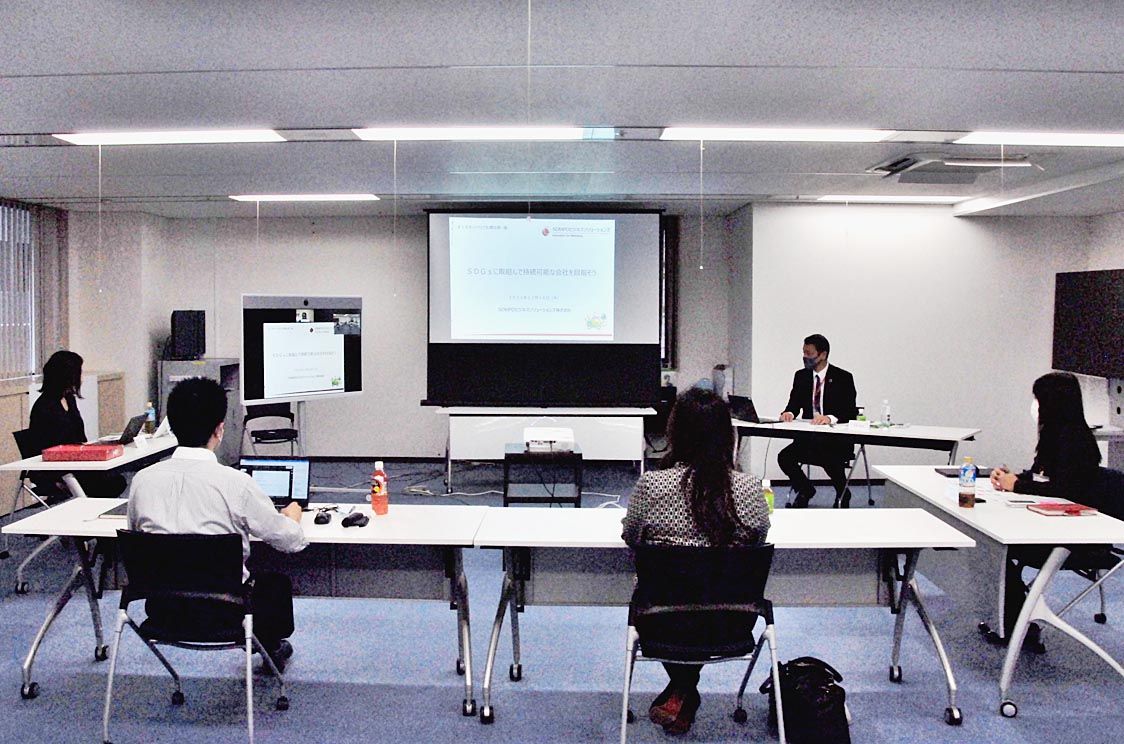 【札幌】AIRオートクラブ札幌支部(石上剛支部長)は、「SDGs(持続可能な開発目標)に取り組んで持続可能な会社を目指そう!」と題して、損害保険ジャパン札幌支店会議室とリモートのハイブリッド方式で開催した=写真。 講師はSOMPOビジネス...