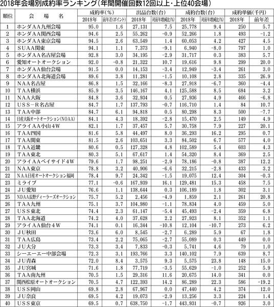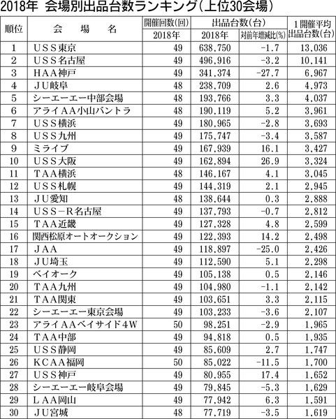 日刊自動車新聞は2018年の中古車オークション(AA)流通実績をまとめた。出品台数は約739万8600台(前年比0・2%減)だった。全国的に災害が相次ぎ、買い替え需要に押されて出品台数が一時的に目減りした時期もあったが、通期では総じて前年...