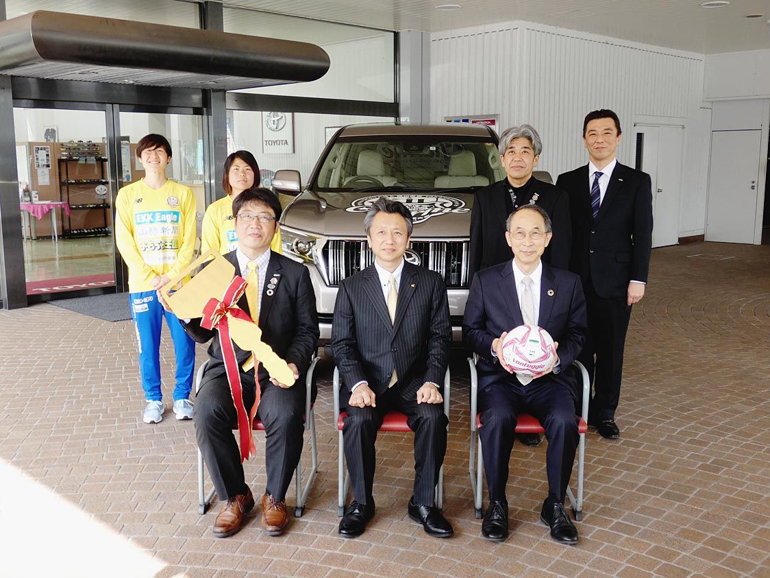【岡山】岡山トヨタ(梶谷俊介社長)は、日本女子サッカーリーグ(なでしこリーグ)2部に所属する吉備国際大学Charme岡山高梁に、「ランドクルーザープラド」1台を貸与した。本社(岡山市北区)で開いた車両贈呈式=写真=には梶谷社長や吉備国際大...