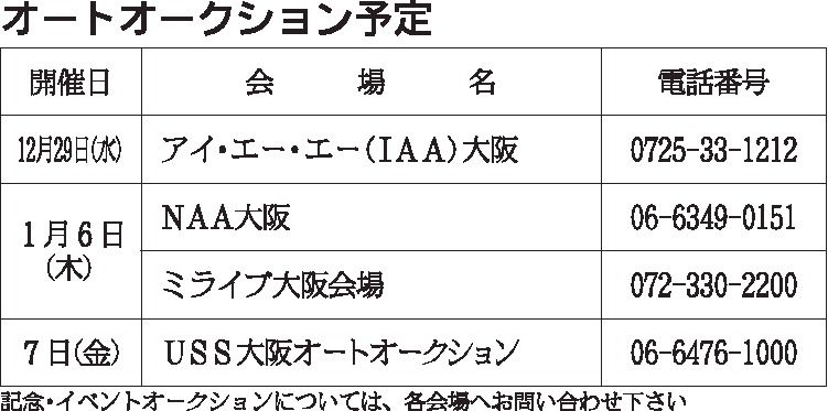 〈オートオークション予定〉近畿地区 2021/12/29~2022/1/7