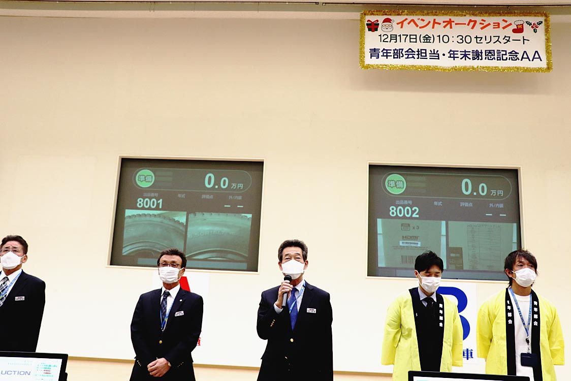 【新潟】JU新潟(海津博理事長)は、「青年部会担当年末謝恩記念BIG AA(オートオークション)」を開催した=写真。青年部会員の総力を結集して出品台数の目標を大幅に超えた。 競り開始前のセレモニーで海津理事長は、「県内の中古車市場はタマ不...