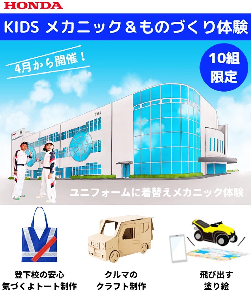 【大阪】ホンダテクニカルカレッジ関西(五月女浩校長)は、4月から小学生が自動車整備やクルマのものづくりの楽しさを体験できるイベントを開始する。新型コロナウイルスの感染拡大で減少した子供たちと触れ合う機会や子供たちの体験の場を創出するのが目...