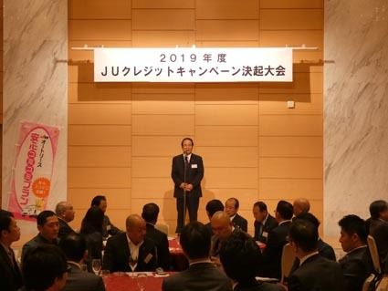 大阪府中古自動車販売協会・同商工組合(JU大阪、松永靖久会長・理事長)は14日、大阪市内のホテルで「2019年度JUクレジットキャンペーン決起大会」を開いた。オリエントコーポレーション(オリコ)の幹部や府内各支店の社員も含め約100人が出...