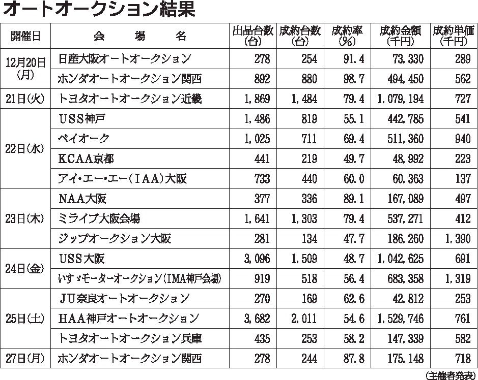 〈オートオークション予定〉近畿圏 2025/12/16~22