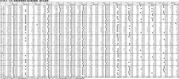 【2015年4~9月 地域別新車販売(含む軽自動車、海外生産車】