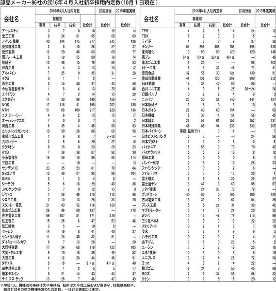 日刊自動車新聞社がまとめた部品メーカーの2016年度新卒者採用状況(16年春入社、調査実施は10月上旬)によると、15年度との比較が可能な69社の新卒内定者は計4895人で、今期の実績を4・4%上回った。前年実績比で12・1%増となった1...