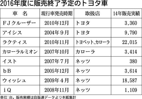 トヨタ自動車は2016年度から、日本国内向け商品の大規模な再編に乗り出す。16年度中に「アイシス」「ラクティス」など8車種の販売を終了。トヨタ店、トヨペット店、カローラ店、ネッツ店の全4チャンネルで商品体制の再構築を始める。トヨタは15年...