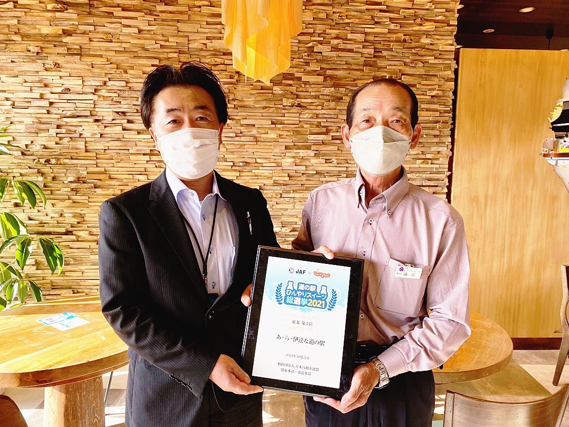 ひんやりスイーツ総選挙東北エリア1位となった「あ・ら・伊達な道の駅」にJAF宮城が認定証
