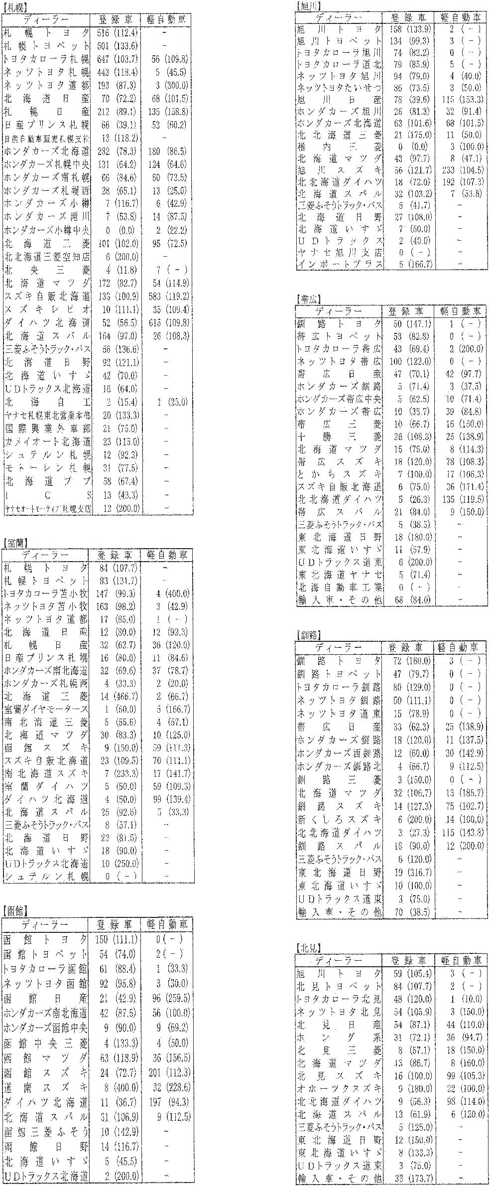〈2月度全道管内別ディーラー別新車登録・届け出台数〉(カッコ内は前年同月比)※札幌管内ホンダ系・スズキ系の登録台数は自販連正会員分