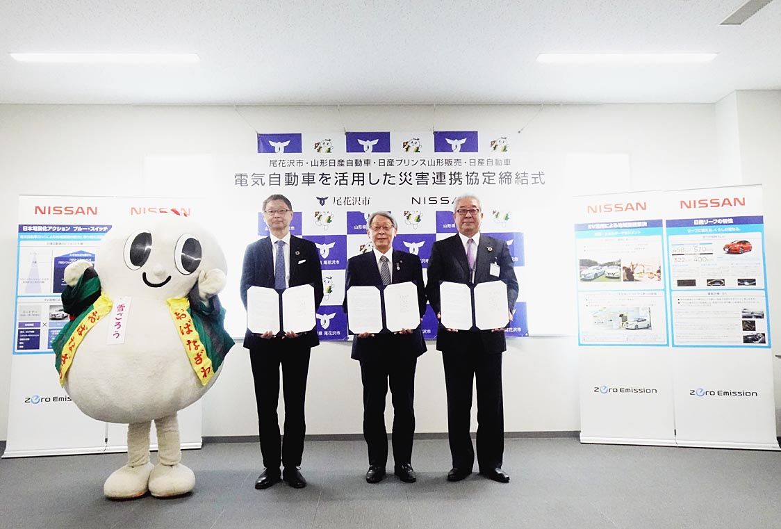 日産と山形日産、プリンス山形、尾花沢市と連携協定 災害時にリーフ活用