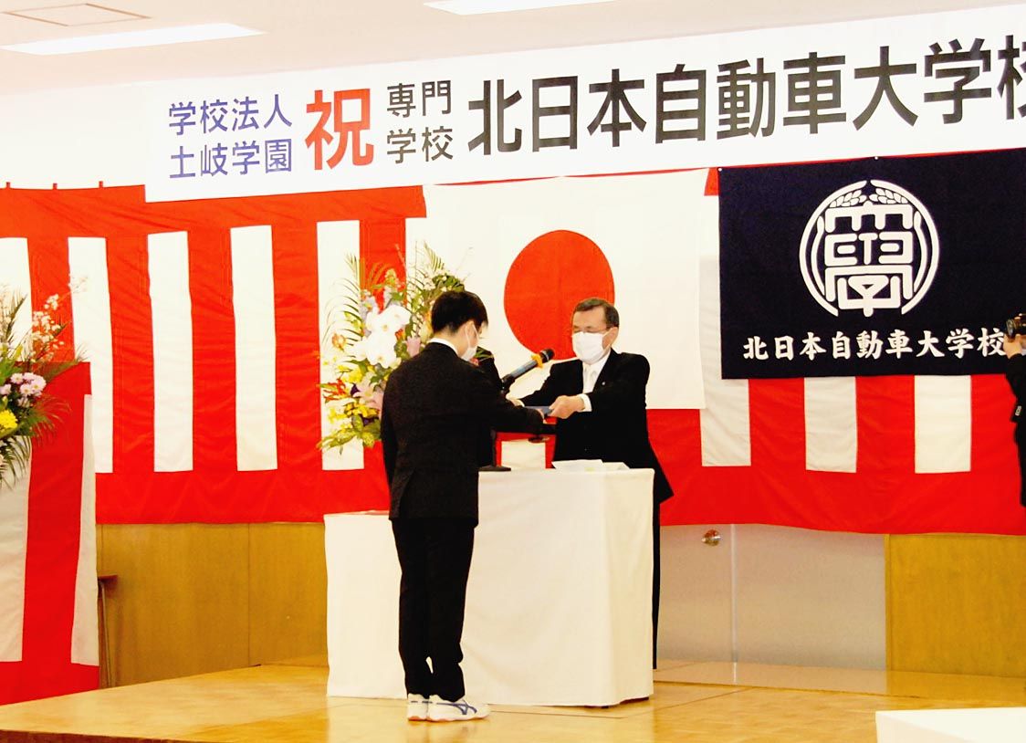 【芦別】北日本自動車大学校(齋木修二校長)は12日、学内の多目的ホールで「卒業証書授与式」を開催した=写真。新型コロナウイルスの感染症対策を徹底し、自動車整備科の第35期卒業生を新車ディーラーなど自動車業界に送り出した。 地元市長をはじめ...