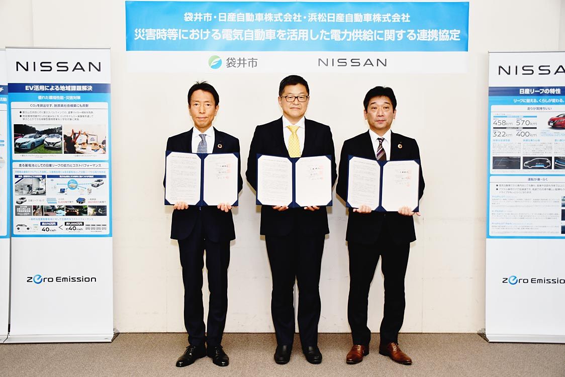 日産と浜松日産、袋井市と災害連携協定 EVで電力供給