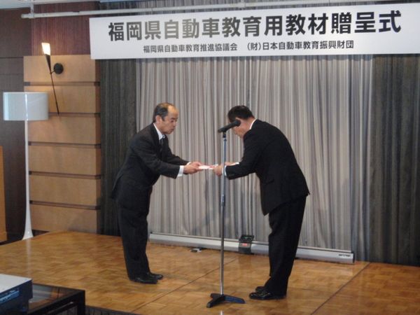 【福岡】日本自動車教育振興財団(小枝至理事長)と福岡県自動車教育推進協議会(有田耕一会長)はこのほど、福岡市内のホテルで「福岡県自動車教育用教材贈呈式」を実施した。今回は県内の高等学校12校に教材を贈った。 式典で有田会長は「車のない生活...