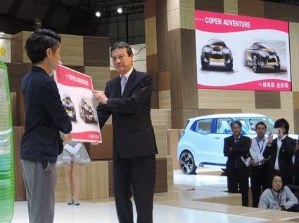 ダイハツ工業は28日、6~8月に実施した「コペンドレスフォーメーションデザインアワード」の最優秀賞を発表した。338人の応募の中から越坂部圭亮氏の「コペンアドベンチャー」に決定。三井正則社長が賞状と記念品を贈った。この作品は実車化し、20...