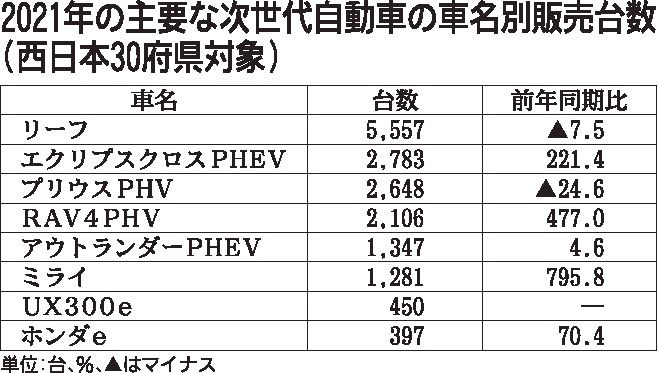 西日本の次世代車市場、着実に成長 2021年は34%増1万6703台 新型車効果追い風に