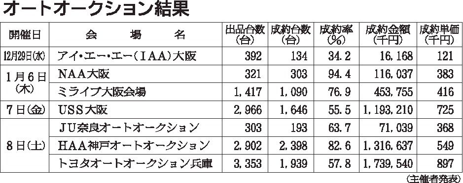 〈オートオークション結果〉近畿地区 2021/12/29~2022/1/8