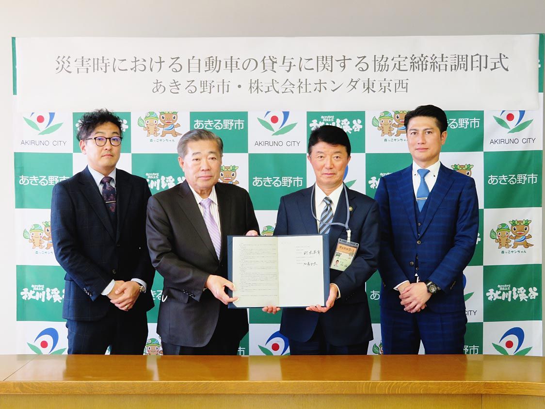ホンダ東京西(加藤和夫社長)は、あきる野市(村木英幸市長)と「災害時における自動車の貸与に関する協定」を締結した。大規模災害が発生または発生するおそれがある場合に、あきる野店(伊藤浩嗣店長)が保有する車両のうち、要請時点で貸与可能な車両を...