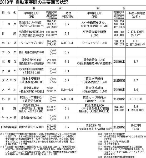 〈2019自動車春闘〉日産、マツダ満額 賃上げで明暗 トヨタ、ホンダ前年割れ