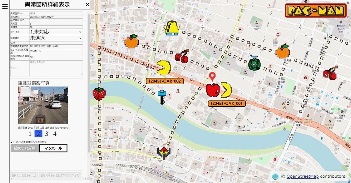 今後、管理対象道路を走行したかどうかの表示に、道路上のクッキーを食べるパックマンを登場させるなどの演出を検討する。