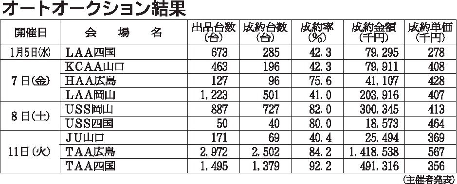 〈オートオークション結果〉中・四国地区 2025/12/17~23