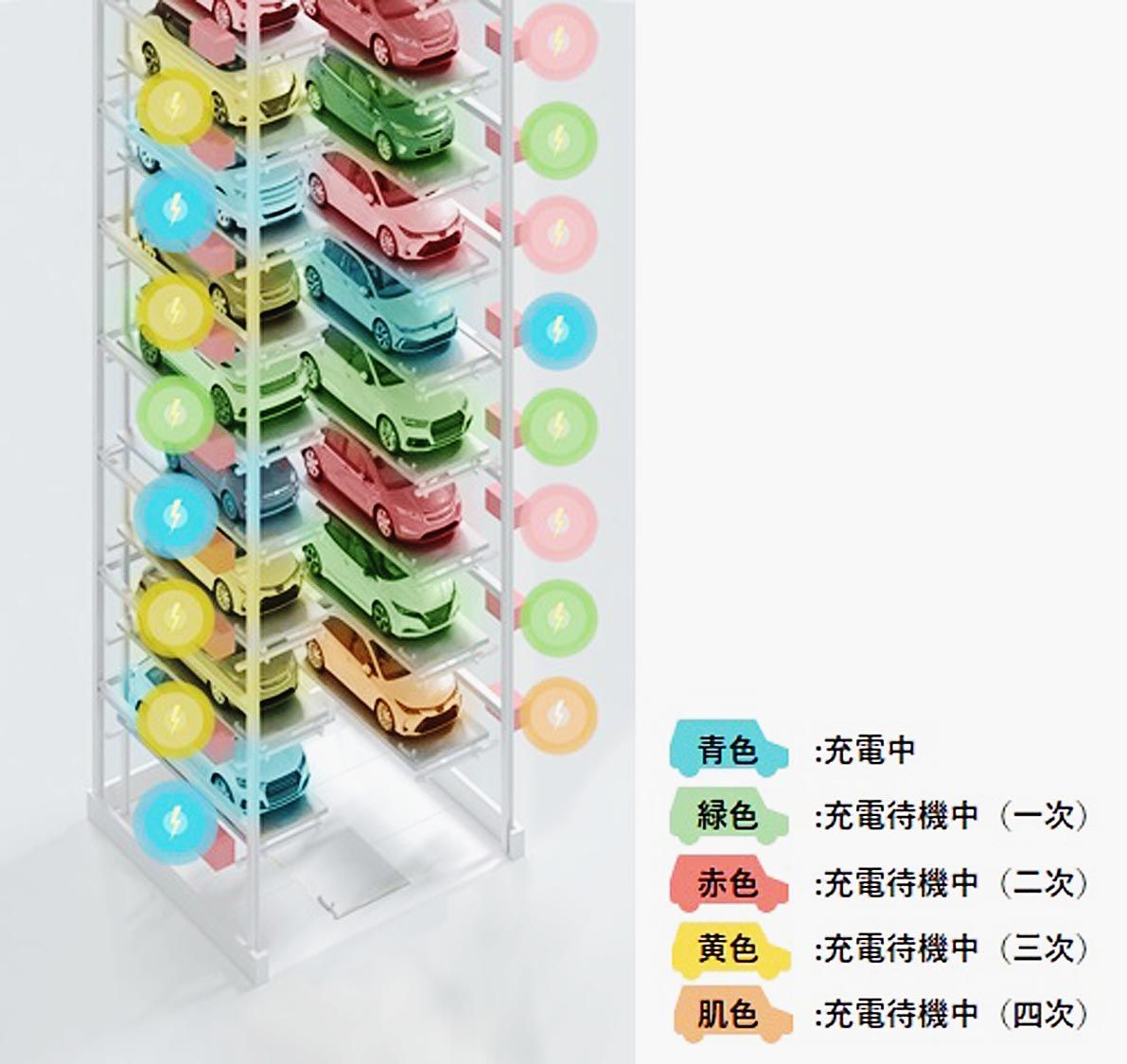 IHI運搬機械(村上晃一社長、東京都中央区)は、機械式駐車装置に駐車中のすべての電気自動車(EV)への充電を可能とするシステム「省電力・EV全台充電システム」を開発したと発表した。2022年4月に発売開始する。新システムはEVを順番に充電する方式で、従来の8分の1のEV用電源容量で利用可能。既設の機械式駐車装置にも後付けできる仕様とした。