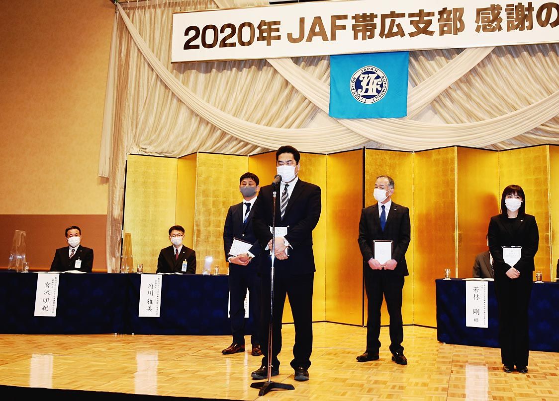 【帯広】達人たちが語る入会促進のポイント―。日本自動車連盟(JAF)帯広支部(村松一樹支部長)は、帯広市内のホテルで2020年感謝の会を開いた。感謝状贈呈式の中で優秀な成果を上げたディーラースタッフが、会員獲得のコツや思いなどをスピーチし...