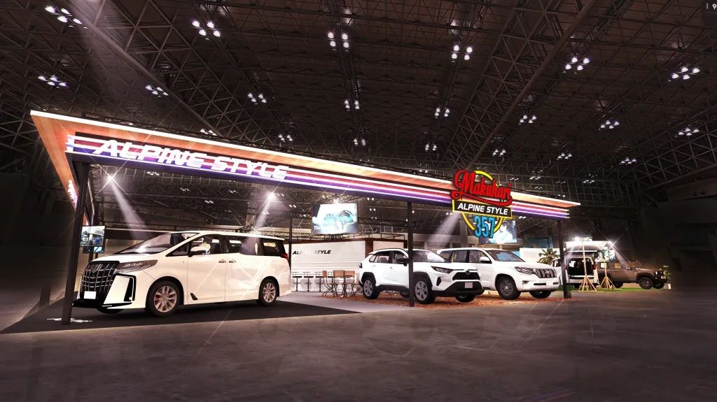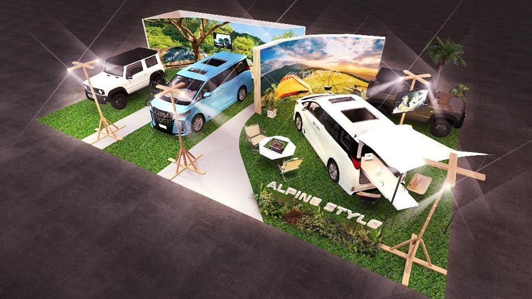 アルパインスタイルは、ポップアップストア「アルパインスタイル幕張357店」という位置づけでコンプリートカーを中心とした販売と、ディスプレイオーディオなどアルパインの新製品を展示する。車両はアルパインスタイルのコンプリートカー6台に加え、新提案であるアウトドア仕様を含めた10台を展示予定で、ポップアップストアとして車両やアルパイン製品を購入検討のお客様を迎える。