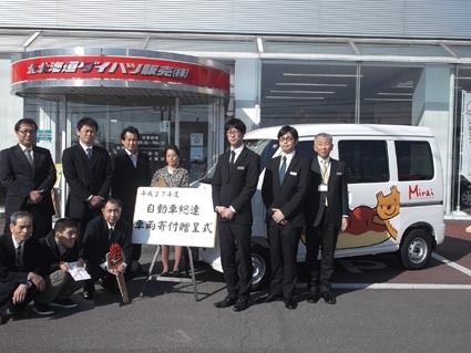 北北海道ダイハツ労組、福祉施設に車両寄贈 ハイゼットカーゴ
