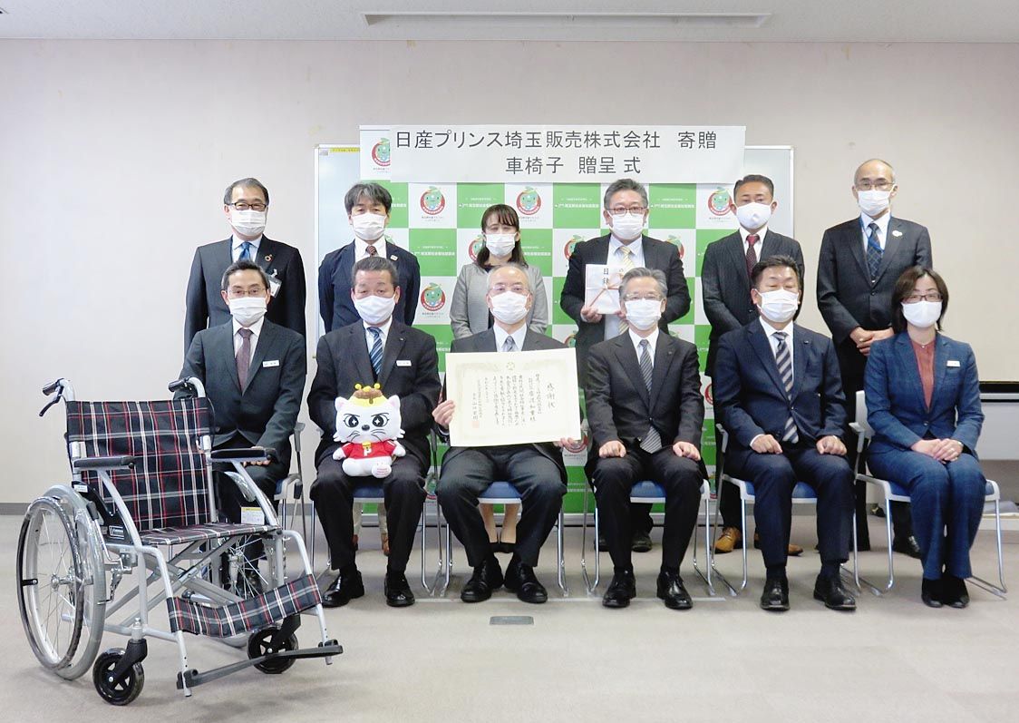 【さいたま】日産プリンス埼玉(■渡和重社長)は、県内の社会福祉施設10事業所に車いすを各1台、計10台を寄贈した。さいたま市浦和区内の「彩の国すこやかプラザ」で贈呈式が催され、■渡社長が寄贈先の関係者に目録を手渡し、同社には埼玉県社会福祉...