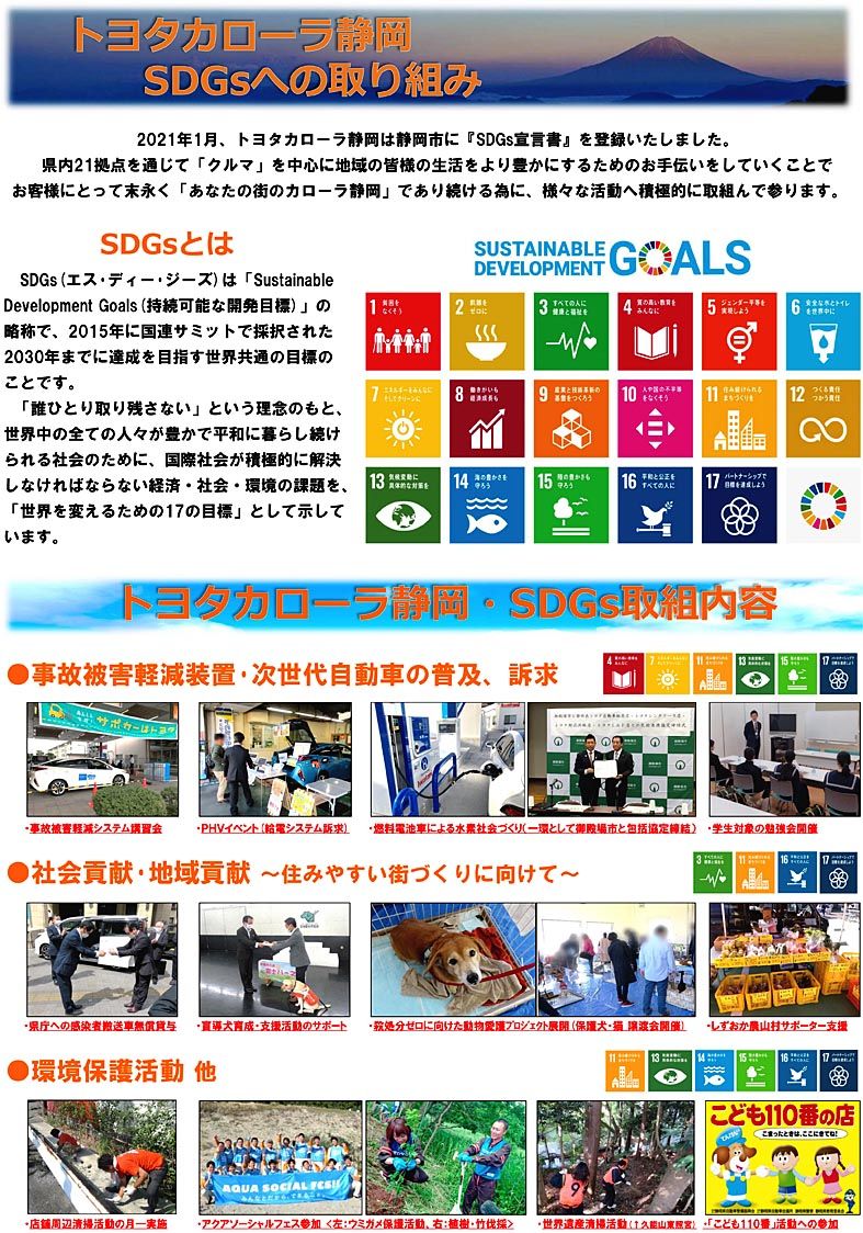 トヨタカローラ静岡(堀章弘社長)は、SDGs(持続可能な開発目標)の達成に向け、静岡市が推進する「静岡市SDGs宣言」を行った。「地域にとって町一番の店舗であり続けるために、さまざまな地域貢献活動を積極的に行う」(堀社長)ことを狙いに、次...