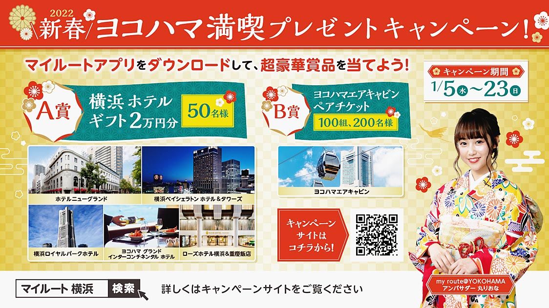 【横浜】KTグループと横浜トヨペットが共同で運営するアットヨコハマ(上野健彦代表取締役、宮原漢二代表取締役)は、マルチモーダルモビリティサービス「マイルート」のアプリ内で「新春ヨコハマ満喫プレゼントキャンペーン!」=写真=を展開し、アプリ...