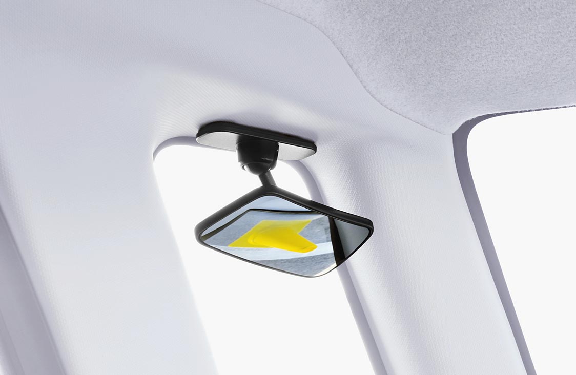 フロントクオーターガラスを備える軽トールワゴンや大型の三角窓を備えるミニバンなどのAピラー付近に張り付けることで、側方の死角を把握可能とし幅寄せを補助する。ロングアームと2点ポールジョイントにより可動域を確保し、さまざまなボディー形状に対応するとともに角度も容易に調整可能とした。87mm×50mmの鏡面は曲率320SRとし、サイズを抑えながら広範囲を視認できる。車内取り付けとし、洗車や走行時の脱落も防ぐ。