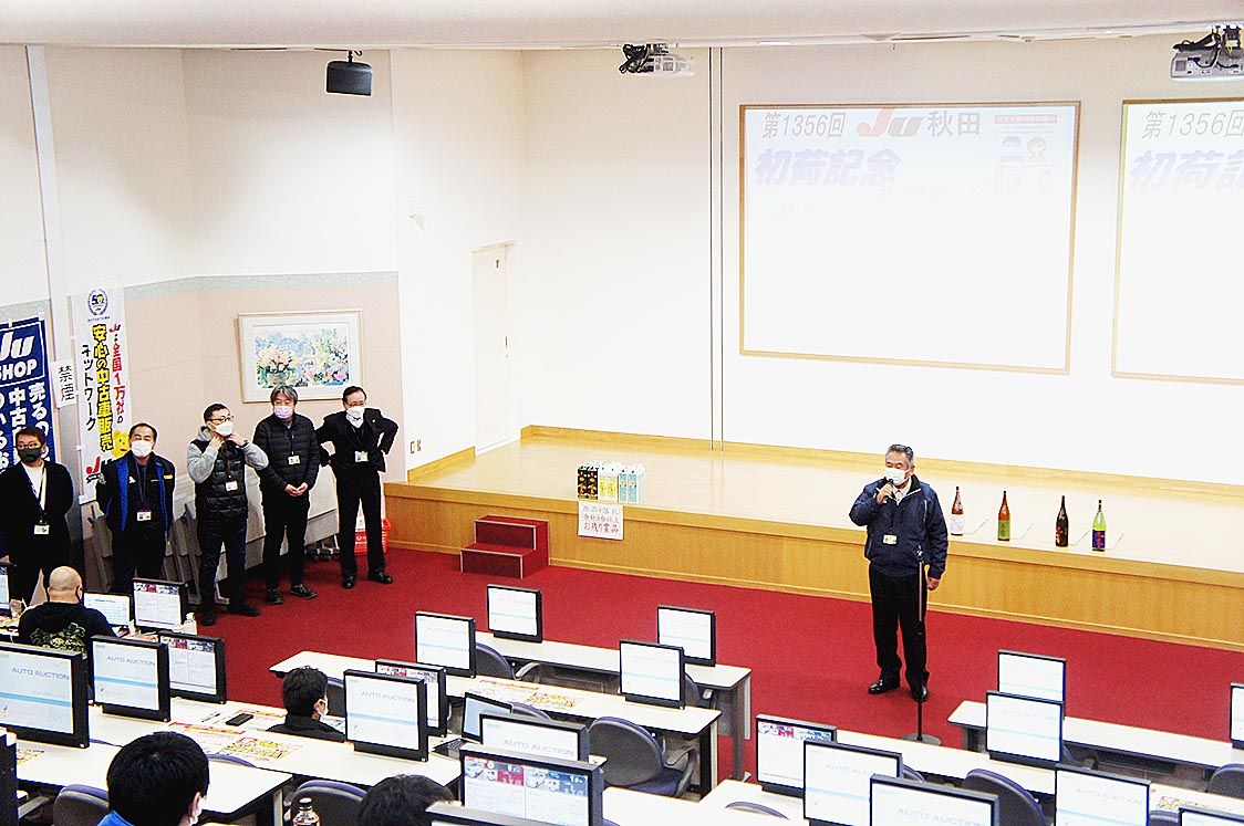 【秋田】JU秋田(藤原寛市理事長)は、秋田市の中古車オークション(AA)会場で「初荷記念AA」を開催した=写真。 昨年は豪雪の影響で初荷記念AAを休催した。今年も強風と大雪の悪天候に見舞われたが、無事に開催することができた。 藤原理事長は...