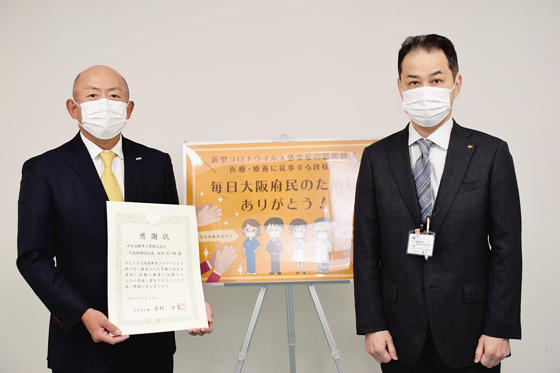 中央自動車工業は、新型コロナウイルス感染症の予防対策を支援する狙いで、事業所を構える大阪府など計11自治体に総額2千万円を寄付する。29日には坂田信一郎社長らが大阪府庁を訪問。府健康医療部保険医療室感染症対策課の江口隆之参事に「大阪府新型...