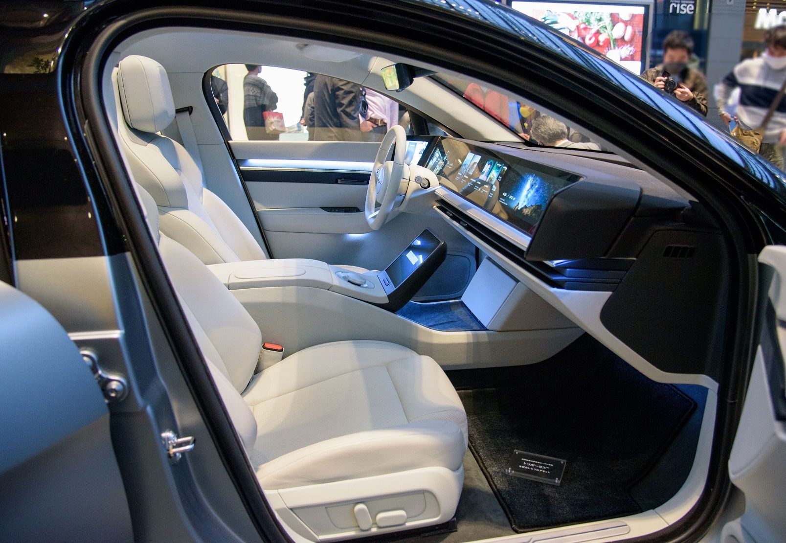 ソニーは28日、電気自動車(EV)の試作モデル「ビジョン―Sプロトタイプ」を、二子玉川ライズ(東京都世田谷区)で行われたイベントに国内で初めて一般公開した。昨年12月からオーストリアで公道でテスト走行しており、年内にも国内で走行試験を始める計画だ。