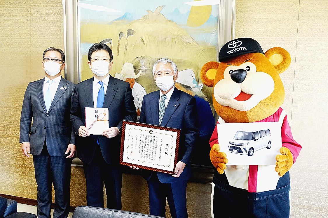 【熊本】熊本トヨタ(井原宏社長)は新型コロナウイルス感染症への対応を側面支援する一環で、熊本市民病院に「ルーミー」1台を寄贈した。26日に熊本市役所(熊本市中央区)で贈呈式を開催した=写真。與縄義昭会長と井原社長、大西一史市長らが出席し、...