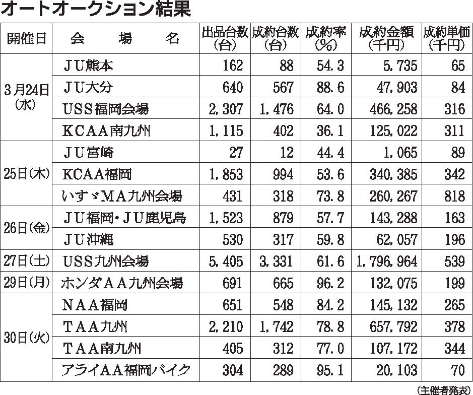 〈オートオークション結果〉九州地区 2021/03/24~30