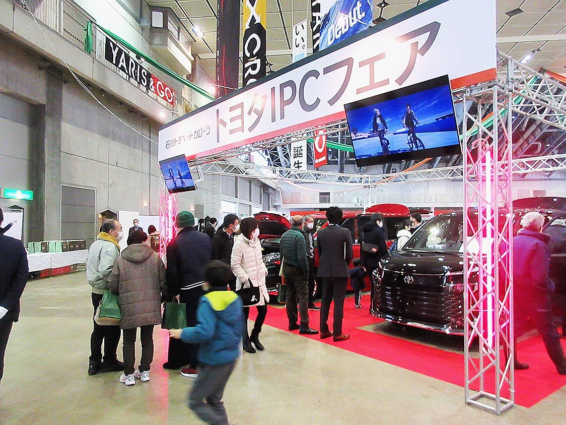【金沢】石川トヨペットカローラ(菊田哲社長)は、石川県産業展示館で「トヨタIPC新春初売フェア」を行った=写真。同会場でのイベントは2年ぶり。フェア期間中の会場と全店舗を含めた受注台数は目標の310台に対し392台、このうち会場での新規ユ...